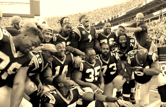 Did anyone see this picture? A smile. I re-watched the entire game to observe Cam Newton’s facial expressions. He was not allowing himself to have fun in the moment. He was playing the Super Bowl against one of the greatest quarterbacks the NFL has ever seen in Peyton Manning. A quarterback who at the potential end of his career realized that he just needed to do what was necessary to win, and not try to win the game all by himself.